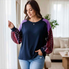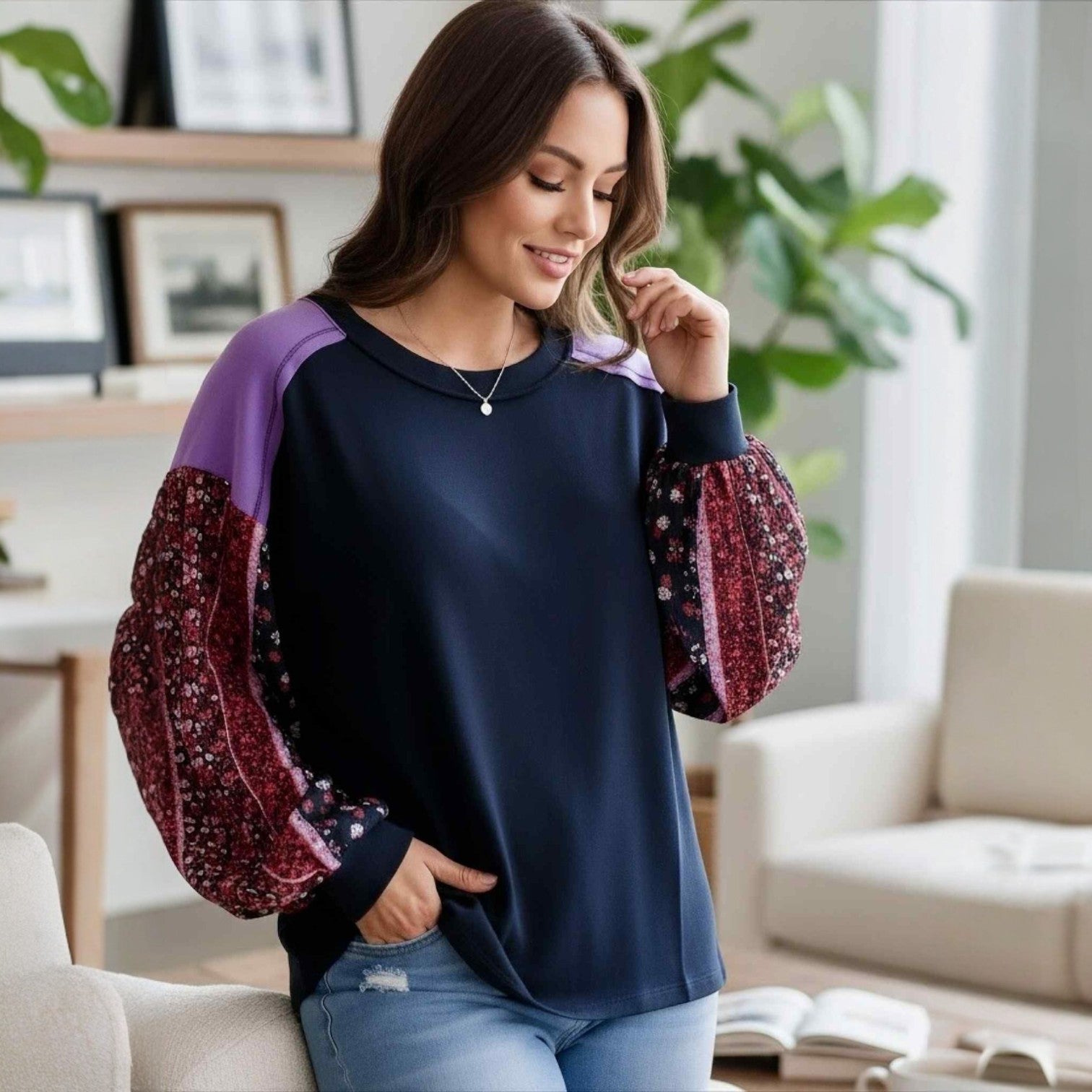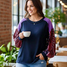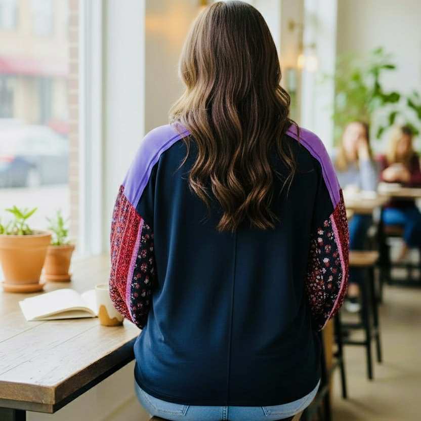 Meet your new cozy-cute essential! The Charmed Moments Top blends a rich navy body with playful colorblock details and beautifully printed bubble sleeves. Soft, stretchy, and effortlessly stylish — it’s the perfect everyday piece with a touch of charm. 💙🌸