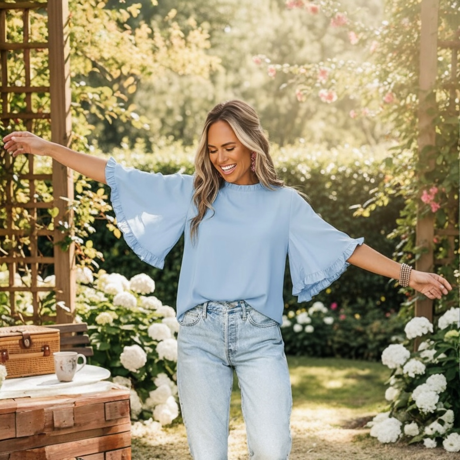 Light, lovely, and effortlessly chic—meet the Frill Seeker, your go-to for breezy charm and timeless polish.