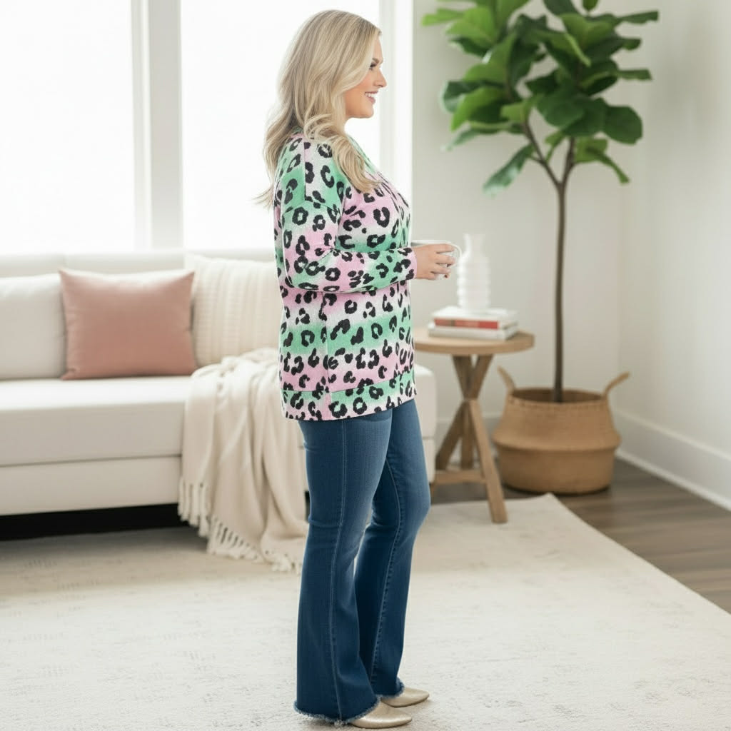 Soft, stretchy, and full of personality—the Pretty Prowl Top by Zenana is the perfect mix of comfort and fun style. Featuring a playful leopard print in soft pastel tones, this top brings an easy pop of pattern while staying totally wearable for everyday life.