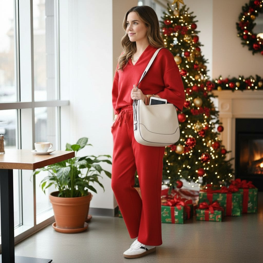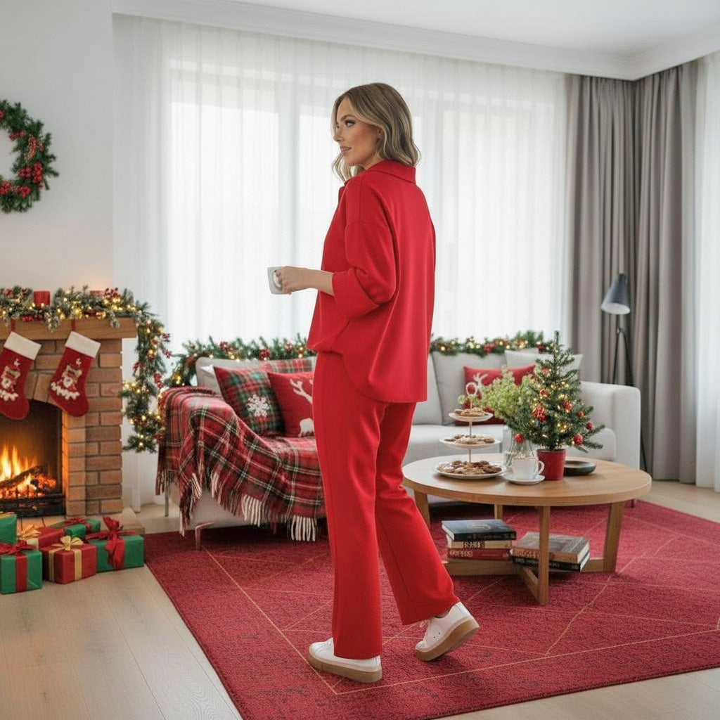 Bold, comfy, and stylish — this set is ready for holiday errands, lounging, or casual outings.