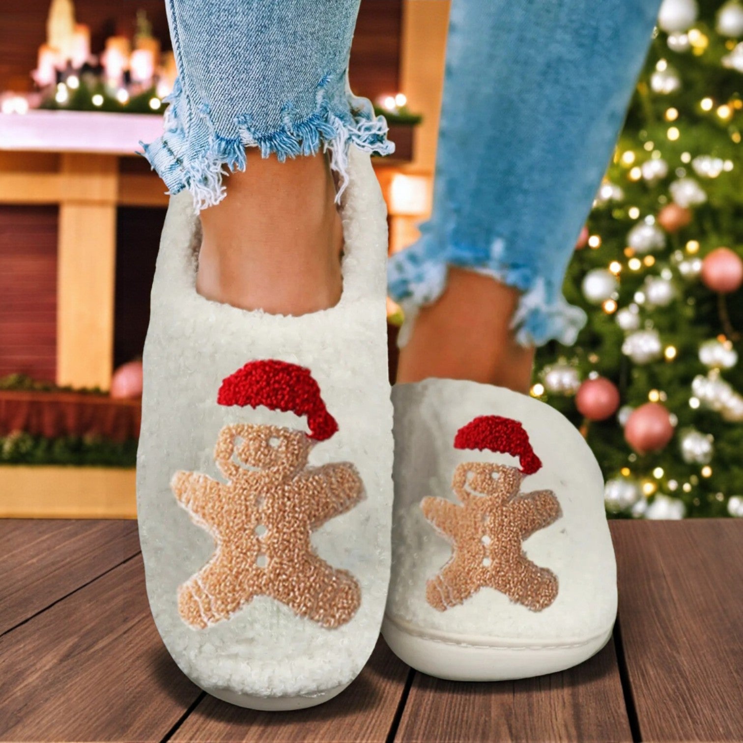 Sugar & Spice Slippers – White Sherpa Christmas Plush Slippers