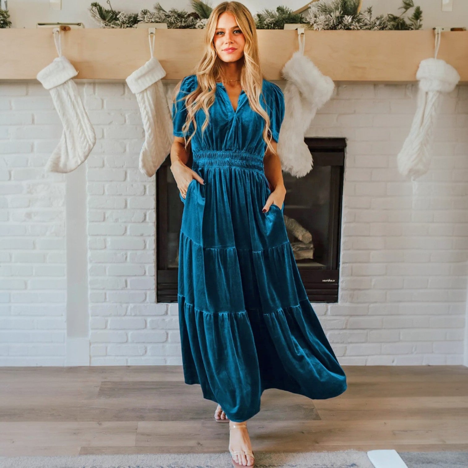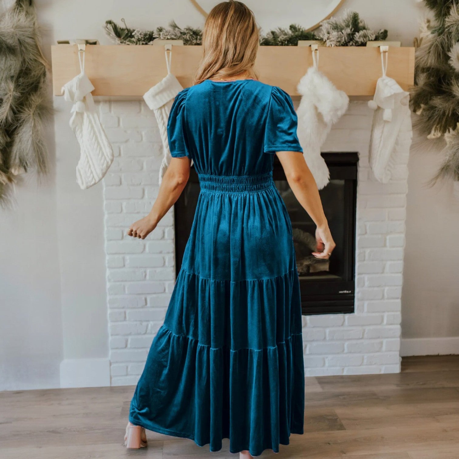 Add a touch of class, comfort, and understated elegance to your wardrobe with this luxurious velvet maxi dress. The soft drape, tiered movement, and flattering cut make it a dreamy pick for holiday gatherings, date nights, winter weddings, or simply feeling gorgeous at home.