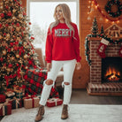 Very Merry Pullover – Fiery Red Plaid “Merry and Bright” Christmas Sweatshirt