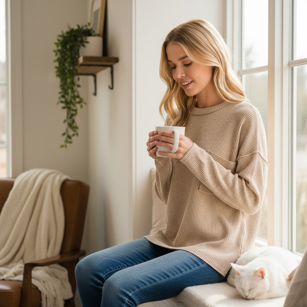• 🧶 Corded Rib Knit: Beautiful texture that adds subtle dimension and cozy vibes.