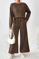 👚 Two-piece set includes a long-sleeve top + wide-leg pants