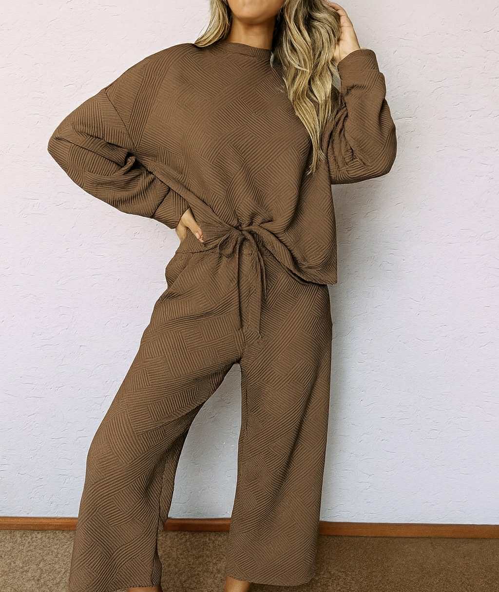 Wrap yourself in cozy confidence with the Espresso Escape 2 Piece Pants Set — your go-to outfit for effortless, everyday comfort. This rich dark brown textured set features a slouchy, ultra-loose fit that’s perfect for lounging in style or stepping out with laid-back elegance. ✨