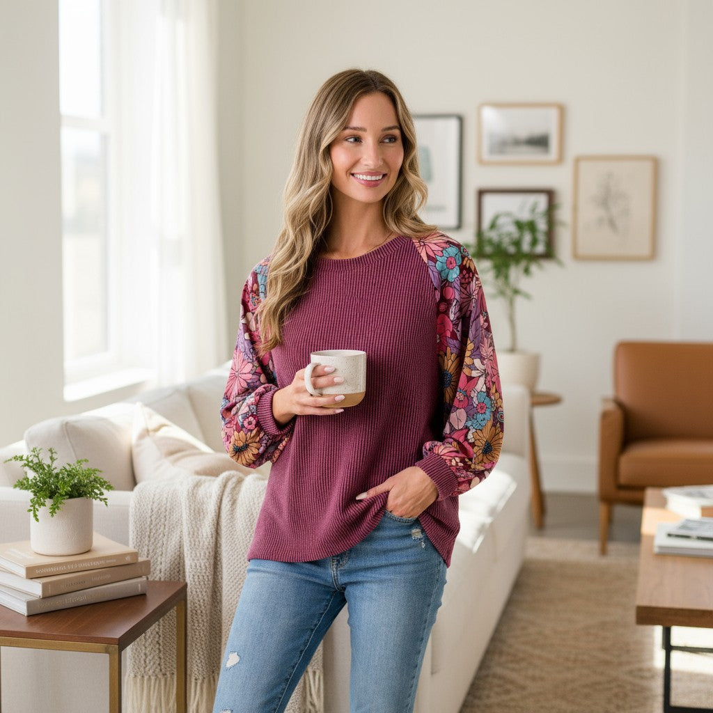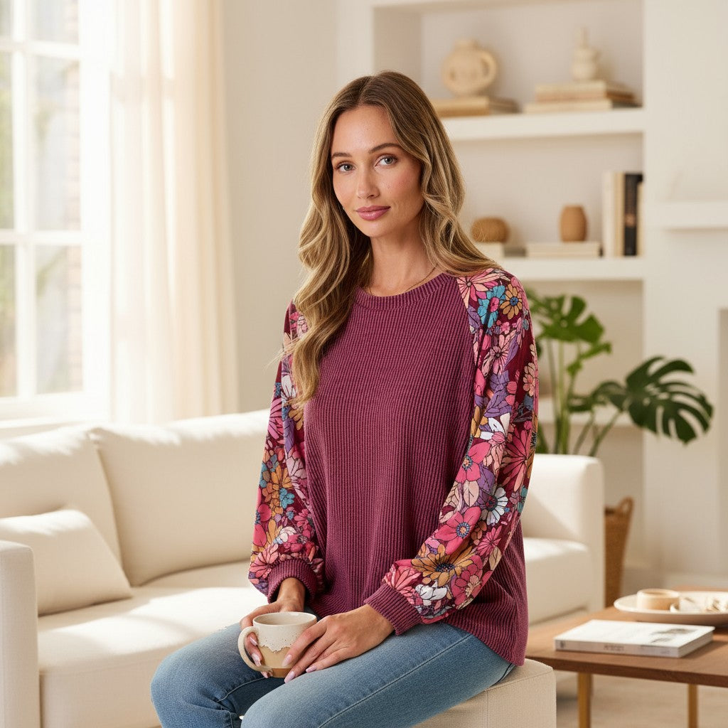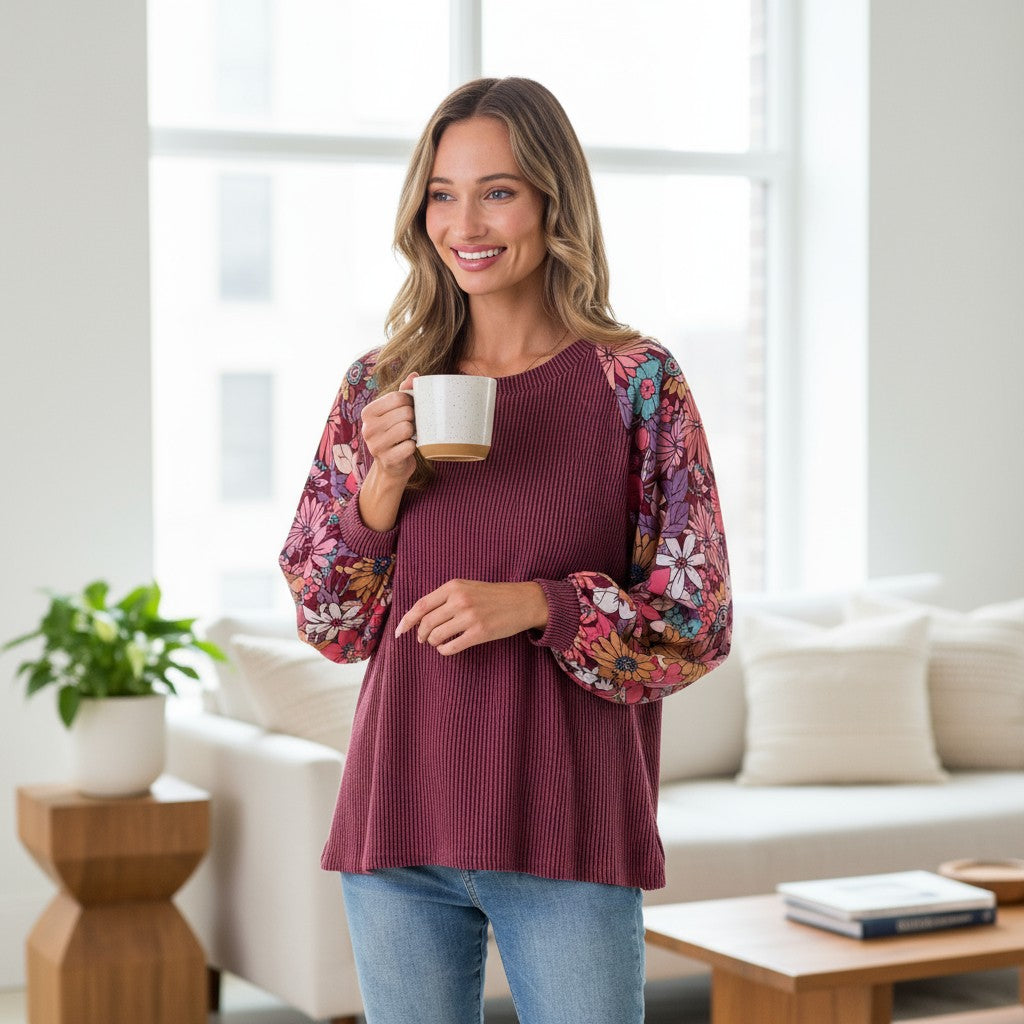 Make a sweet statement in the Lasting Impression Top by Lovely Melody a dalia floral print — a perfect blend of comfort and charm. This beauty features a solid ribbed stretchy body and floral print balloon sleeves that bring a soft, feminine touch to your everyday look.