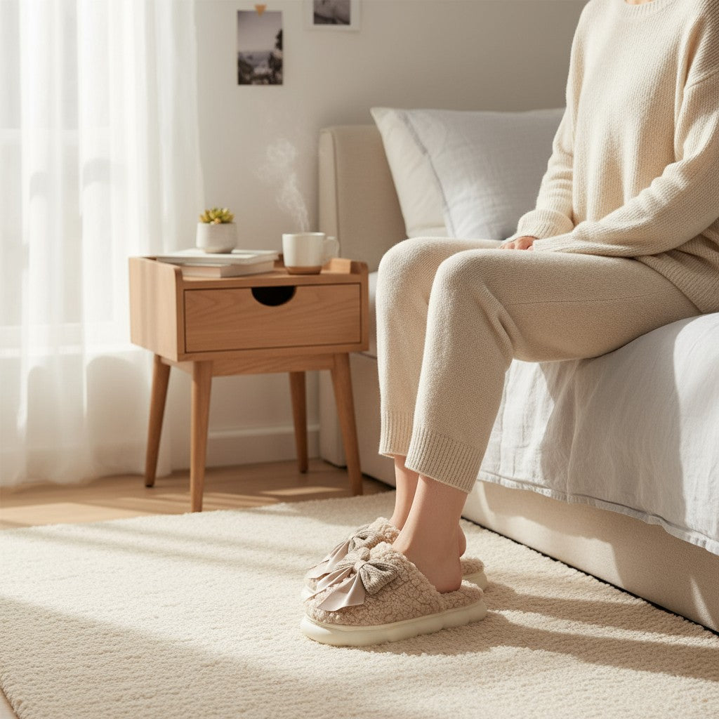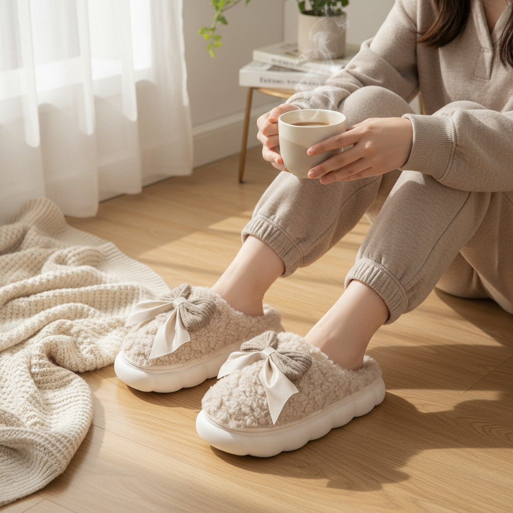 Treat your feet to their coziest winter yet. The Sherpa Snuggles Slippers wrap your steps in plush warmth, soft textures, and the sweetest bow detail for a cute + comfy finish.