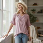 Add a feminine flourish to your everyday style with the Delicate Directions V-Neck Lace Trim Top. This effortlessly pretty blouse features a soft v-neckline trimmed with delicate lace detailing for a subtly romantic touch. The ruffled short sleeves and relaxed silhouette offer breezy comfort, making it perfect for casual days, brunch dates, or dressed-up errands.