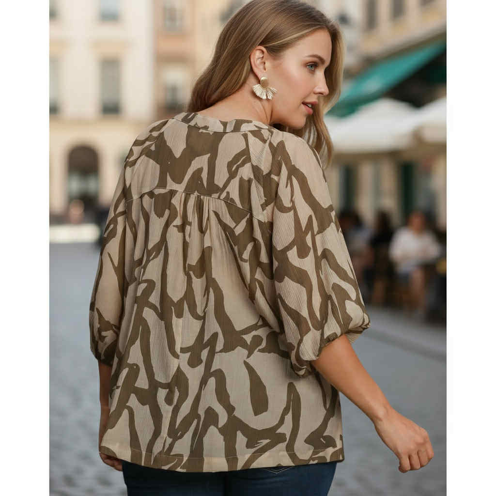 Modern, bold, and effortlessly chic — this two-tone abstract top is designed for curvy girls who love standout style without sacrificing comfort. The relaxed silhouette drapes beautifully, while the eye-catching pattern makes it the perfect statement blouse for workdays, weekend outings, or dinner dates.