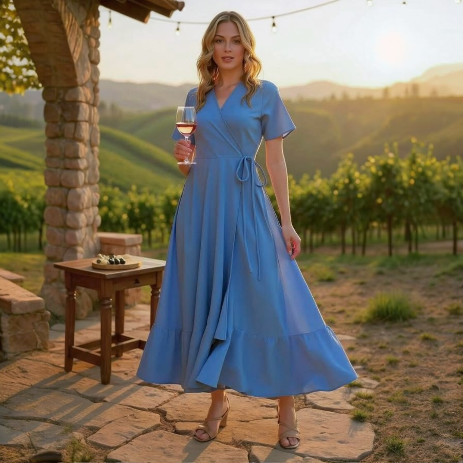 Indulge in this stunning Breezy Blue Maxi Dress by BomBom with a beautiful high/low hem. Its stretchy material and wrap mechanism guarantee a flawless fit. Perfect for weekend getaways, family portraits, religious services, or dressing up with dazzling heels for a night out!