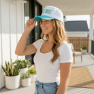Add the perfect pop of color to your everyday look with the LULU Mac Aqua Hat — a trendy embroidered trucker hat designed for women who love effortless style and all-day comfort. This lightweight aqua blue hat combines fashion and function, making it a must-have accessory for sunny days, busy errands, ballgames, beach trips, and casual weekends.