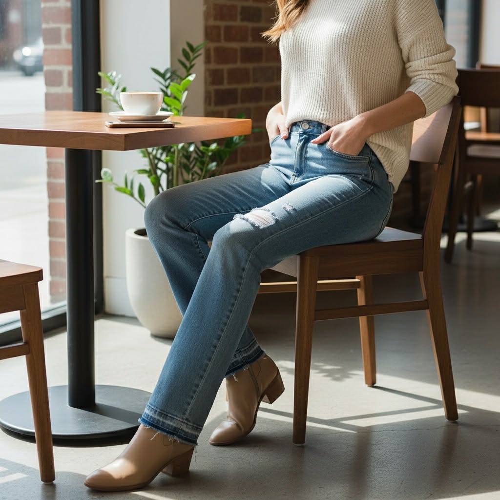 • Bootcut shape pairs beautifully with ankle boots in fall/winter