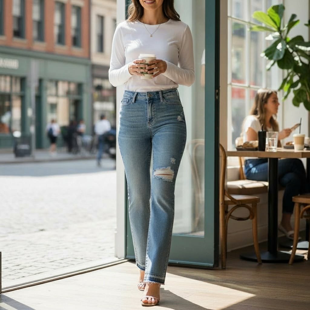 A classic bootcut jean with the perfect Judy Blue stretch — the Harper gives you that flattering midrise fit, sleek leg shape, and a trendy released hem that adds just the right amount of detail. Comfortable, versatile, and easy to dress up or down!