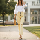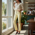 Say hello to your new go-to statement denim—the Sunny Girl Jeans by Risen. These high rise, pale yellow jeans are made to brighten up any outfit with their bold, sunny hue and effortless style. Crafted with extra stretch for all-day comfort, they feature a flattering button fly closure, distressed knees, and raw hems for a perfectly undone finish. The straight leg silhouette brings a laid-back yet polished feel, making them easy to dress up with heels or keep casual with sneakers.