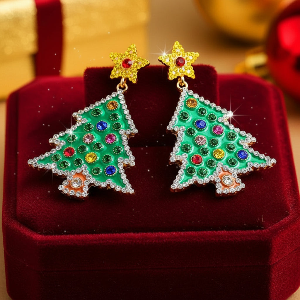 Add instant holiday sparkle to your outfit with these adorable Christmas tree earrings! 🌟