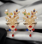 Gold-Tone Rhinestone & Gemstone Reindeer Stud Earrings
