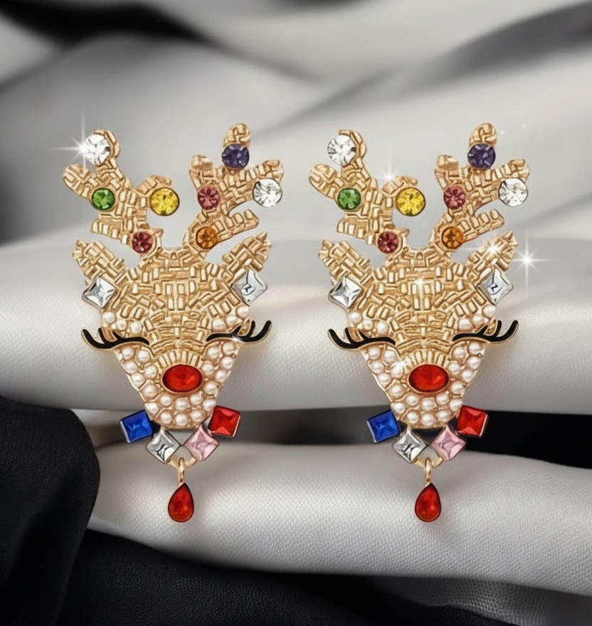 Designed in a creative Rudolph style, they feature colorful gemstones and shimmering rhinestones that catch the light from every angle. The perfect blend of whimsy and chic — because who says Christmas can’t be fashionable? 😉