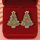 Cute Jeweled Green Christmas Tree Stud Earrings for Women
