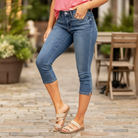 Meet your new go-to denim for warm-weather days—Judy Blue’s Kenzie Mid Rise Capris! Crafted in a flattering medium blue wash, these capris offer a perfect blend of comfort and style with their ultra-stretchy 4-way stretch fabric. Designed with a classic mid rise and a 22" inseam, they hit just the right length for a casual, laid-back vibe. Pair them with a basic tee and your favorite sandals for an effortless everyday outfit you’ll love wearing again and again.