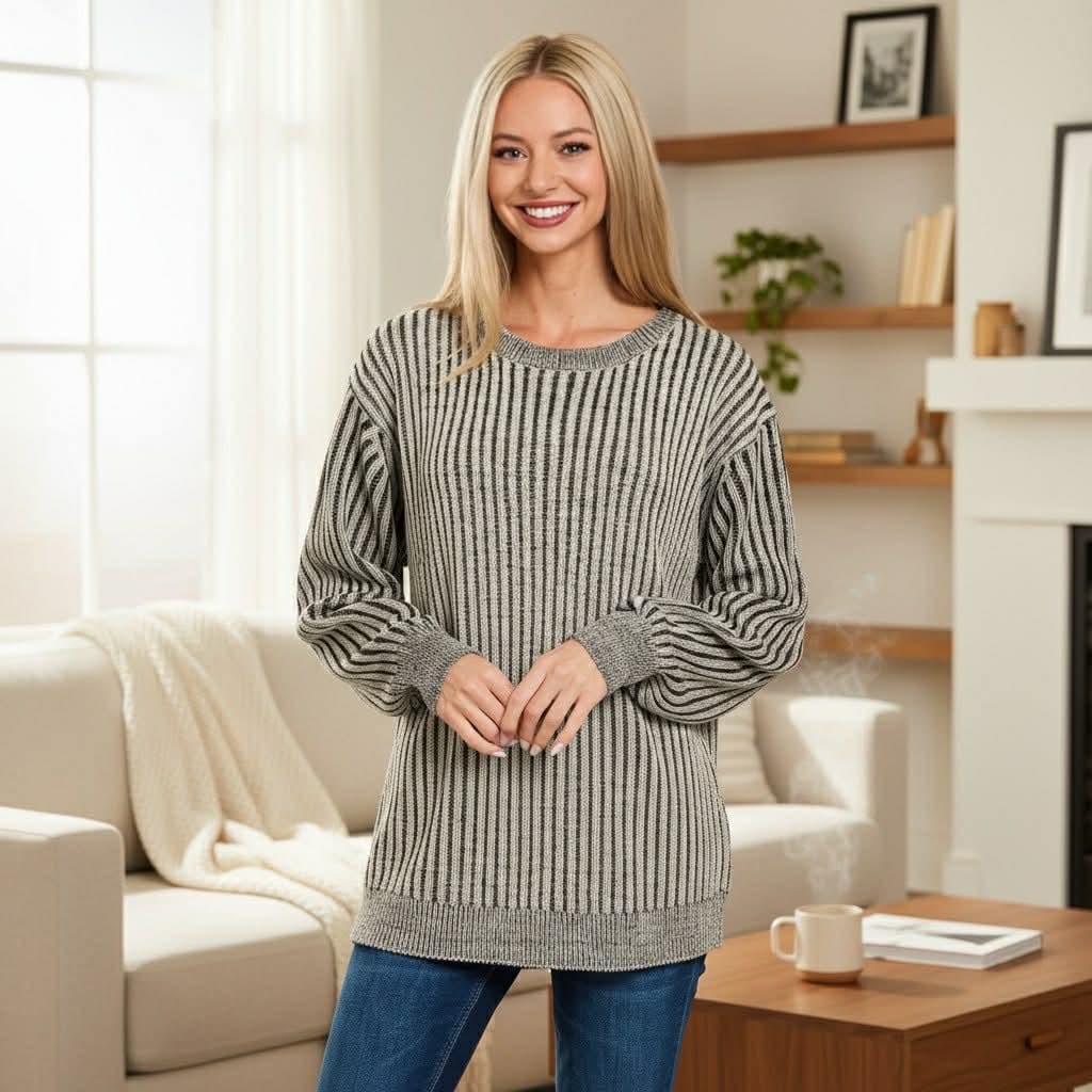 🩶 Between The Lines Sweater — by Zenana in soft black