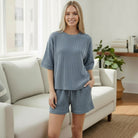 Meet your new go-to for effortless comfort 💫 The Casual Current Shorts Set features a raised rib short sleeve round-neck tee paired with matching shorts with a drawstring waist and patch pockets. Designed for relaxed days at home or casual outings, this easy two-piece delivers that laid-back, pulled-together look Zenana does so well.