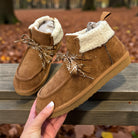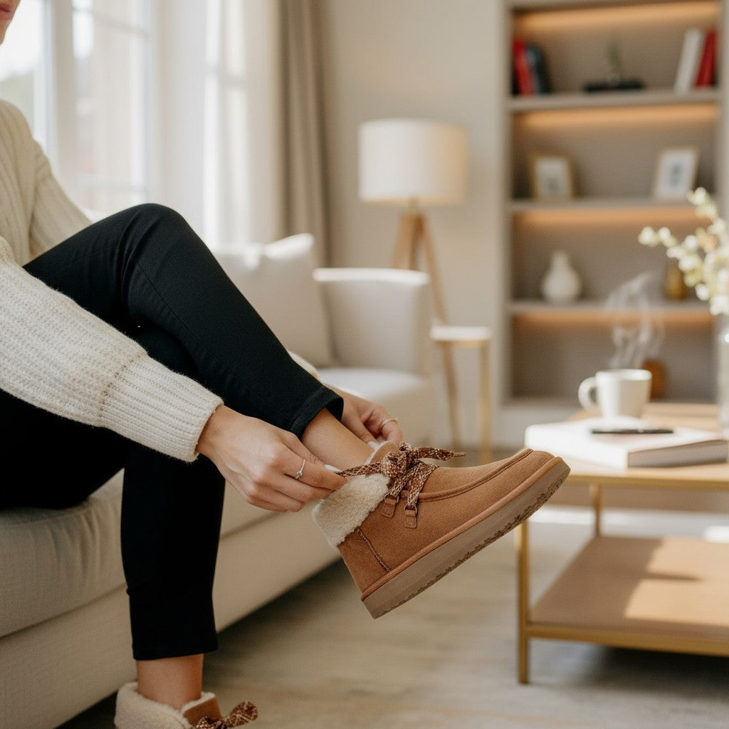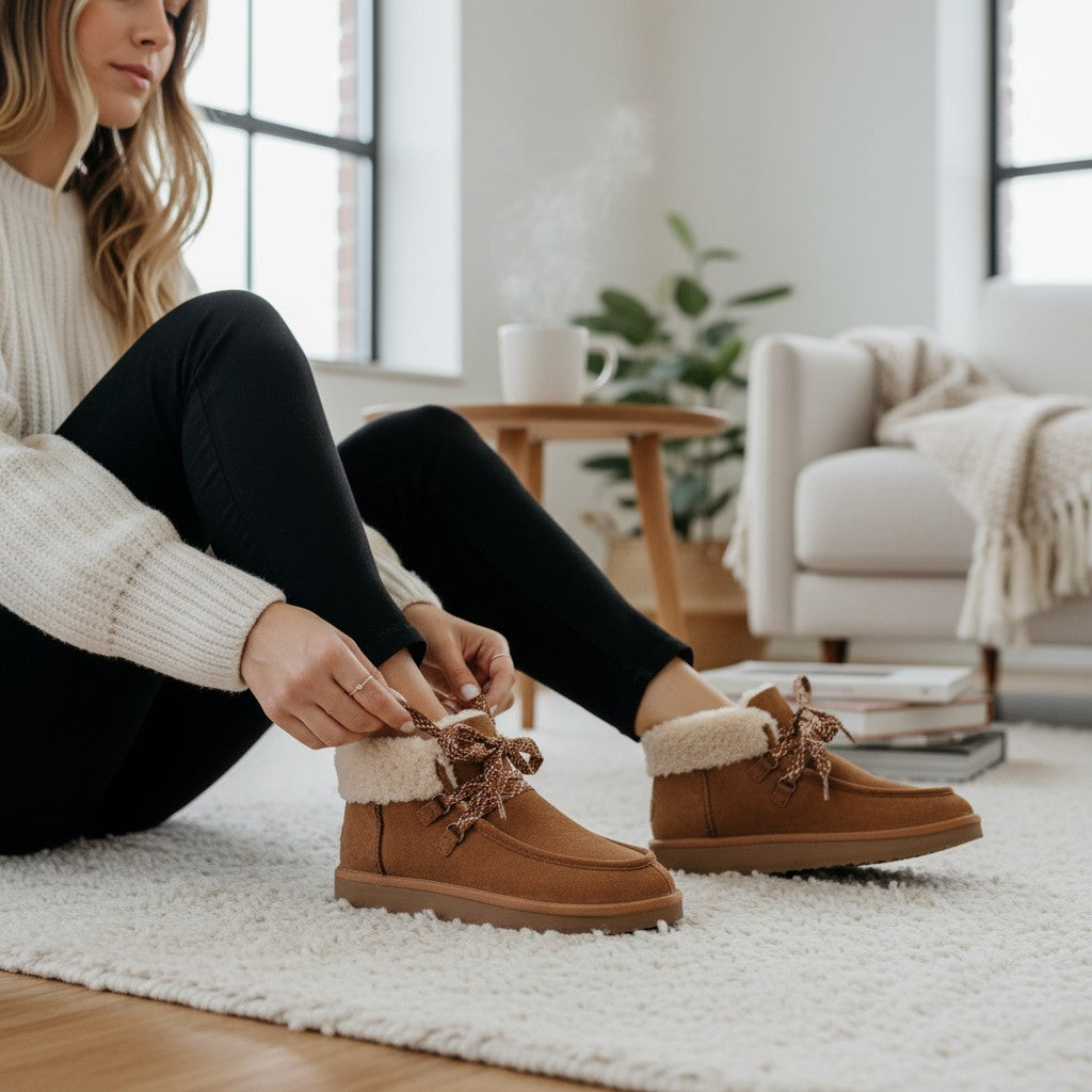 Crafted from vegan micro suede with a soft sherpa interior, they keep your feet snug while maintaining a laid-back vibe. The lace-up detailing gives them just the right amount of edge, and the lightweight sole ensures flexible, all-day wear. ☁️