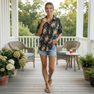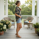 The soft, stretchy fabric moves with you, making it ideal for busy days when you still want to look pulled together. With its relaxed yet flattering fit, this top pairs effortlessly with denim shorts, jeans, or leggings for a look that works from errands to lunch dates and everything in between.