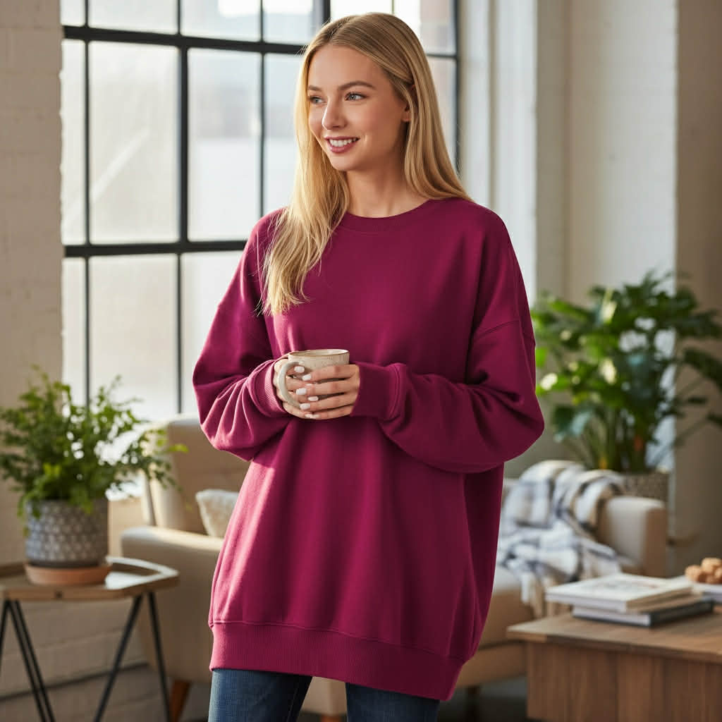 Wrap yourself in effortless comfort with our Hearthside Moments Pullover – the tunic-length fleece sweatshirt designed for cozy days and casual outings. With its ultra-soft fleece blend and relaxed silhouette, this pullover is the perfect go-to for layering or lounging.