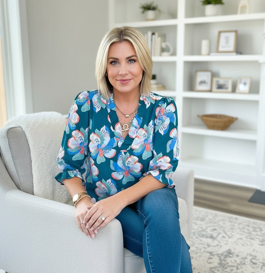 💡 Style Tip: Pair this top with dark denim and ankle boots for an elevated everyday look, or dress it up with trousers and heels for work or dinner plans. Add simple gold jewelry to let the floral print shine ✨