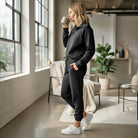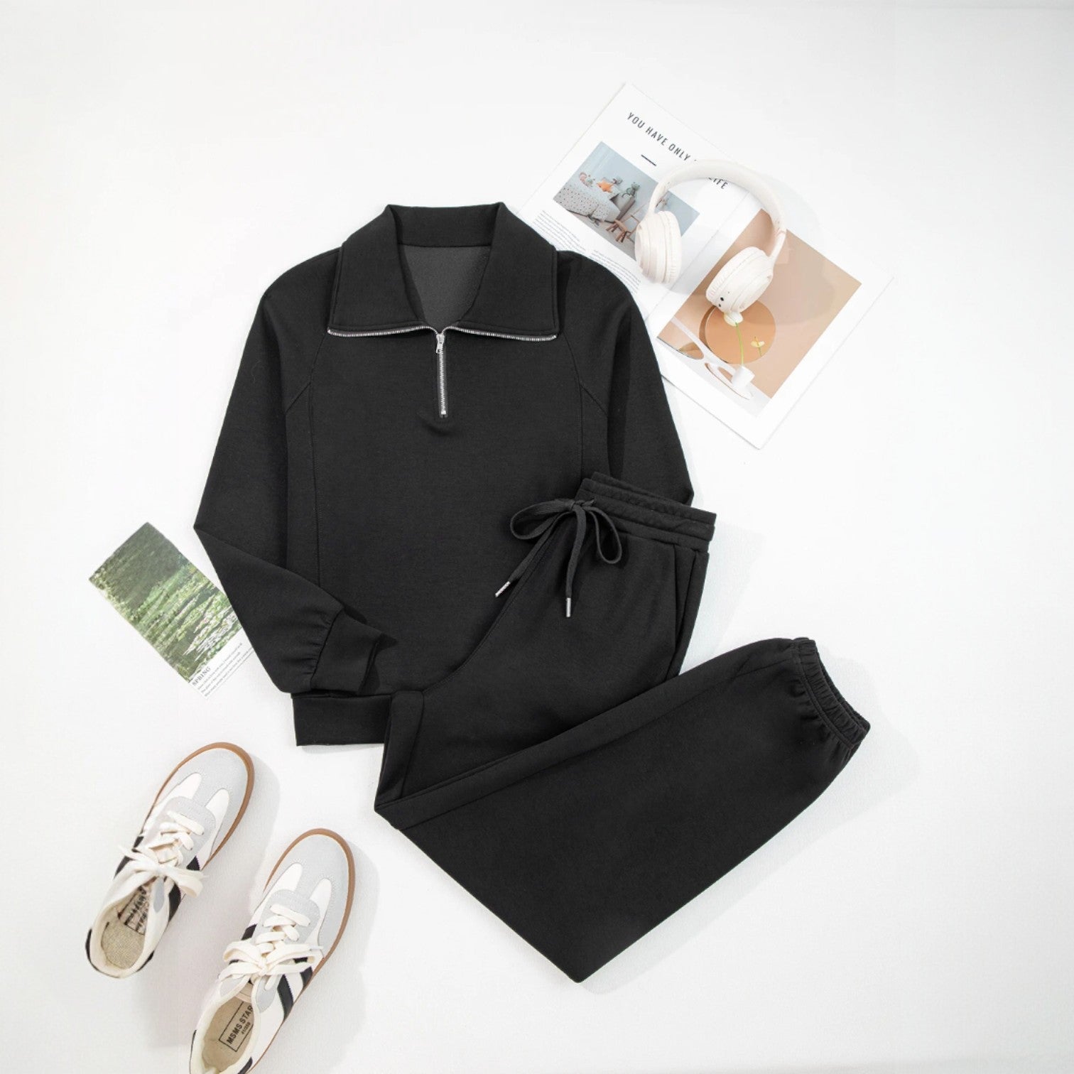 Black Zip-Collar Long Sleeve Top + Drawstring Jogger Pants Set
