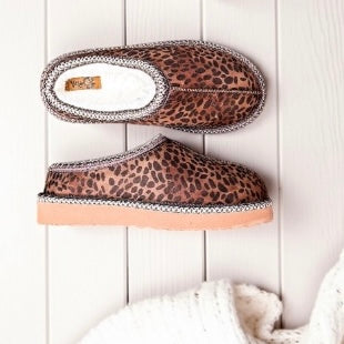 The statement leopard print brings that playful edge, and the woven trim adds a hint of rustic charm that feels just right. A cushioned sole and easy slip-on design make them practical enough for grabbing the mail, yet cute enough to wear all day.