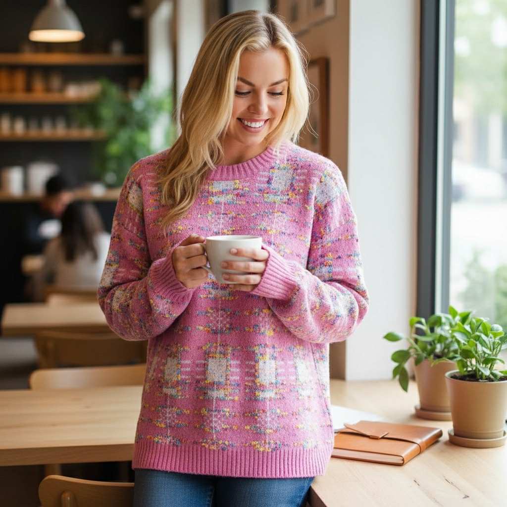 Cozy up in pure sweetness with this multicolor popcorn knit sweater — the perfect piece to brighten chilly days with warmth and charm. A ribbed round neckline, capped sleeves, and ribbed hemline give it that comfy, oversized silhouette we all love. Effortless to style and oh-so-soft, this sweater is made for coffee dates, weekend strolls, and fireside lounging. ☕🍂✨