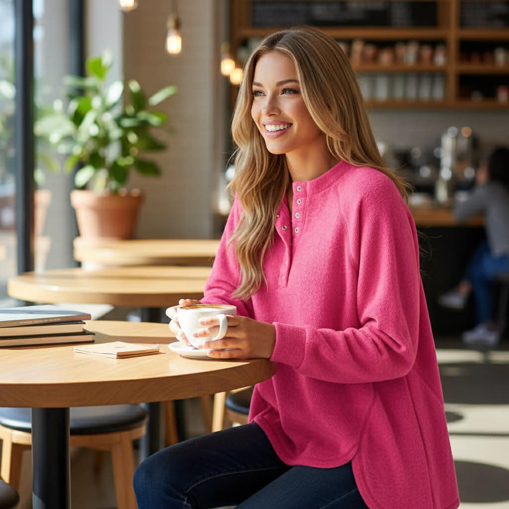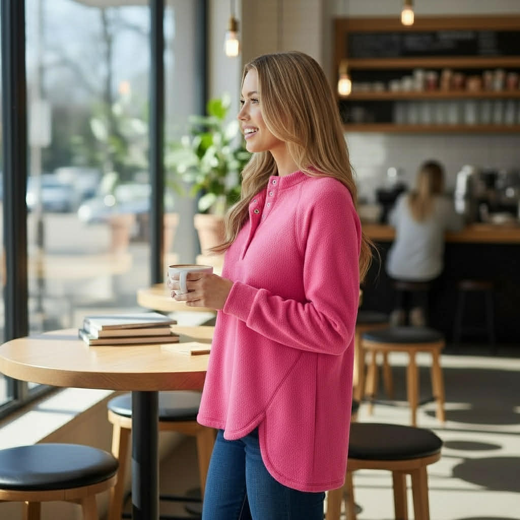 Meet your new everyday favorite! Soft, lightweight, and effortlessly casual — this brushed melange hacci top is designed for comfort with a touch of style. The 7-button henley placket adds a classic detail, while the hi-low hem gives you an easy, flattering fit. Perfect on its own or layered for cooler days! ❄️☕️