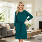 Introducing the Emerald Enchantment Dress. This 3/4 sleeve dress is not only flattering with its cinch waist and knee length, but it's also made with a lightweight fabric and breathable design for comfort no matter the occasion. Plus, it has pockets! Elevate your style with this must-have dress.