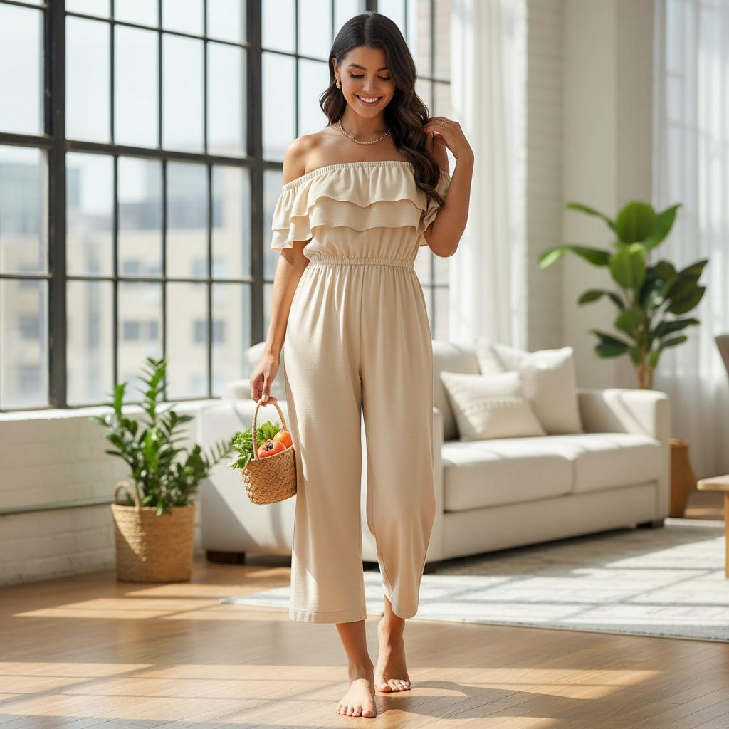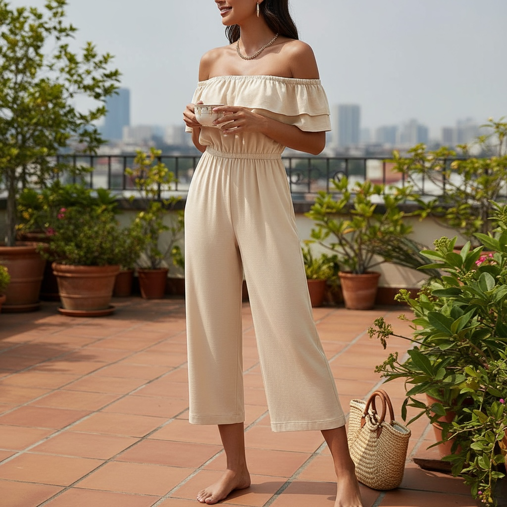 Step into effortless style with the Carefree Coast Jumpsuit, designed for sunshine-filled days and laid-back nights. This chic cropped jumpsuit features a soft polyester fabric that’s light and comfortable, with a stretchy elastic waist that flatters your figure while ensuring all-day ease.
