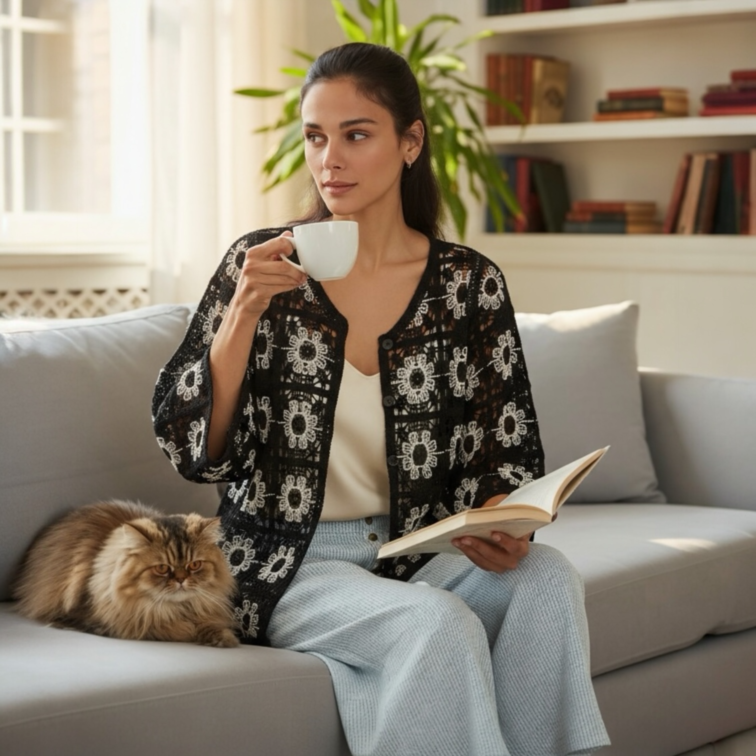 Whether you layer it over a tank and denim or pair it with wide-leg trousers, the Black Dahlia Cardigan turns any outfit into a curated moment.
