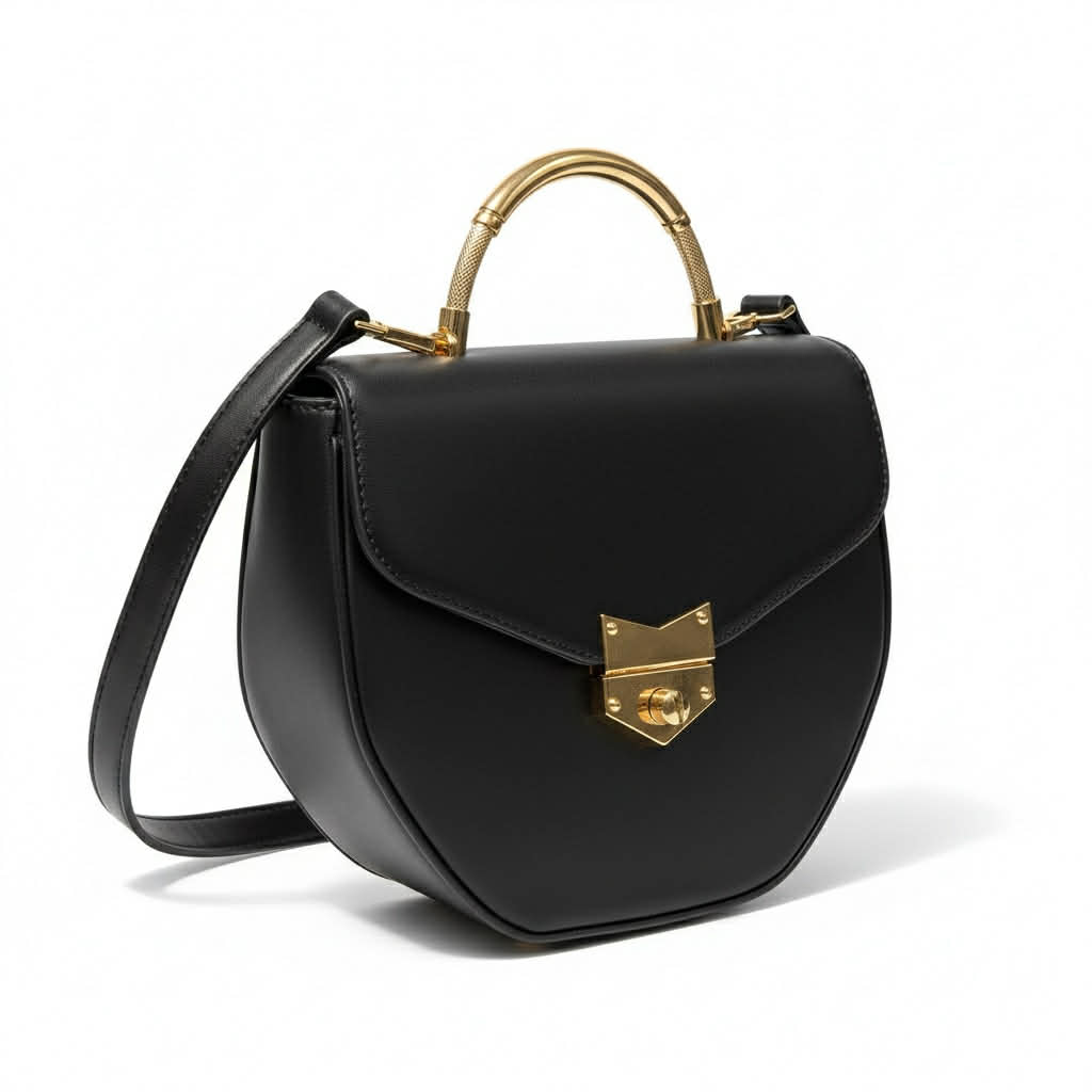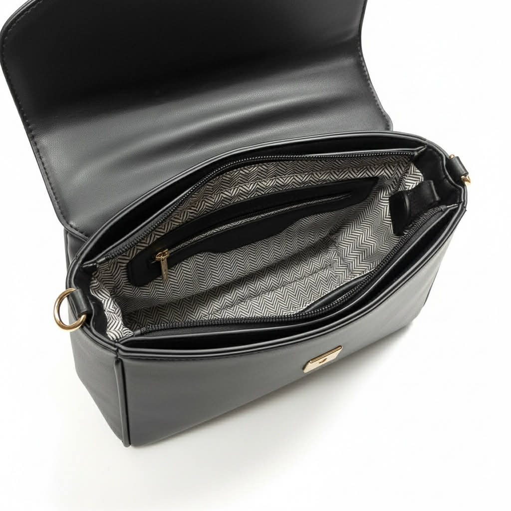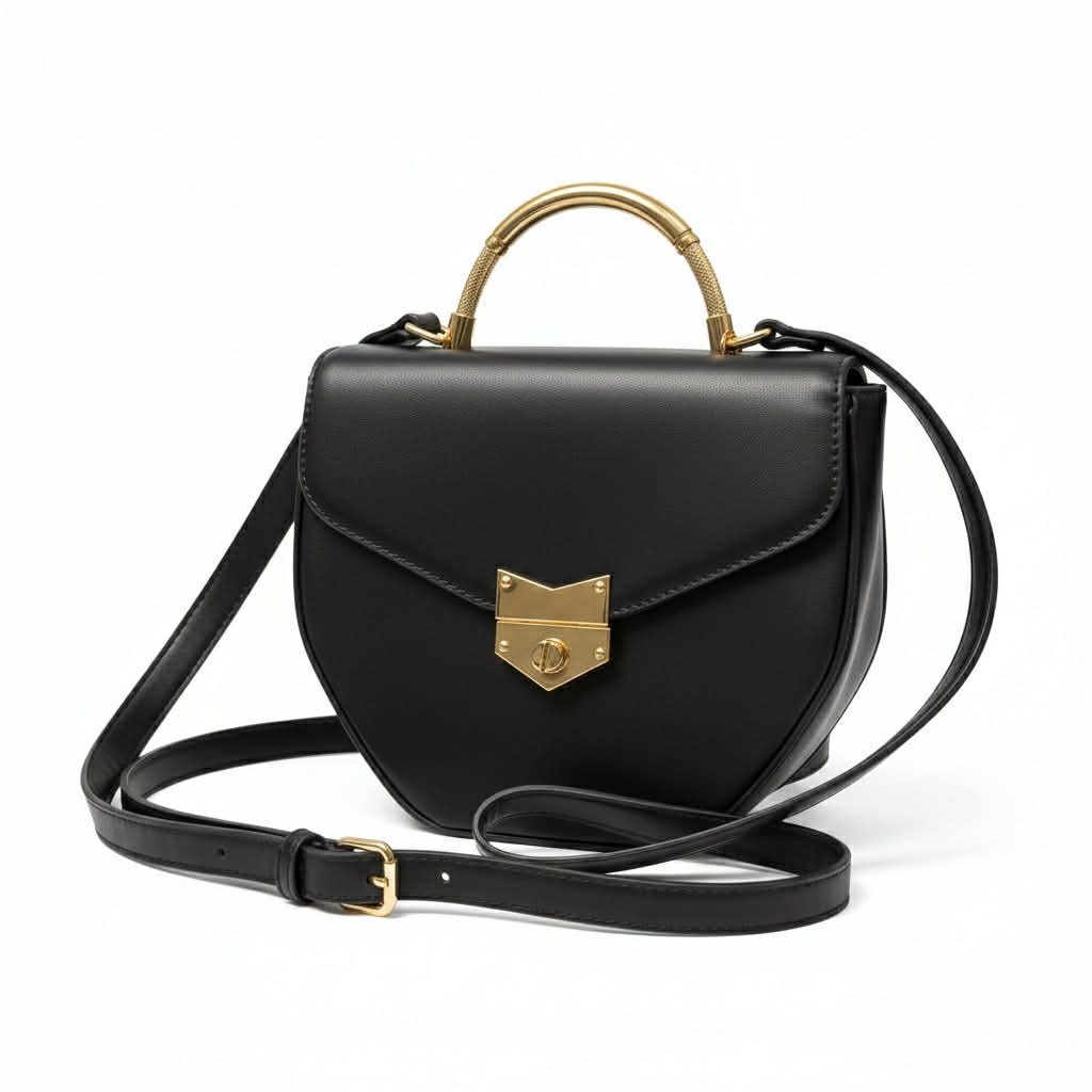 Step into timeless sophistication with this elegant structured crossbody featuring gold-tone accents, a chic fold-over clasp, and a luxe interior lining. This refined accessory is crafted from high-quality vegan leather and sized perfectly for everyday use or special occasions.