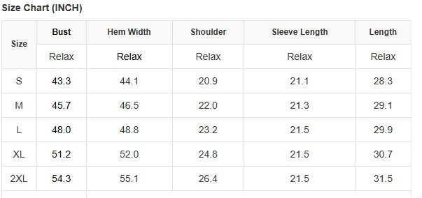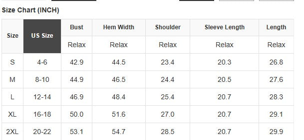 WARM IMPRESSIONS BUTTON DOWN size chart with measurements for S, M, L, XL, and 2XL in inches.