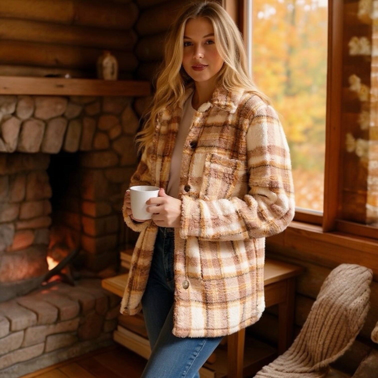 - 🍁 Oversized plaid sherpa design — warm and trendy for chilly days