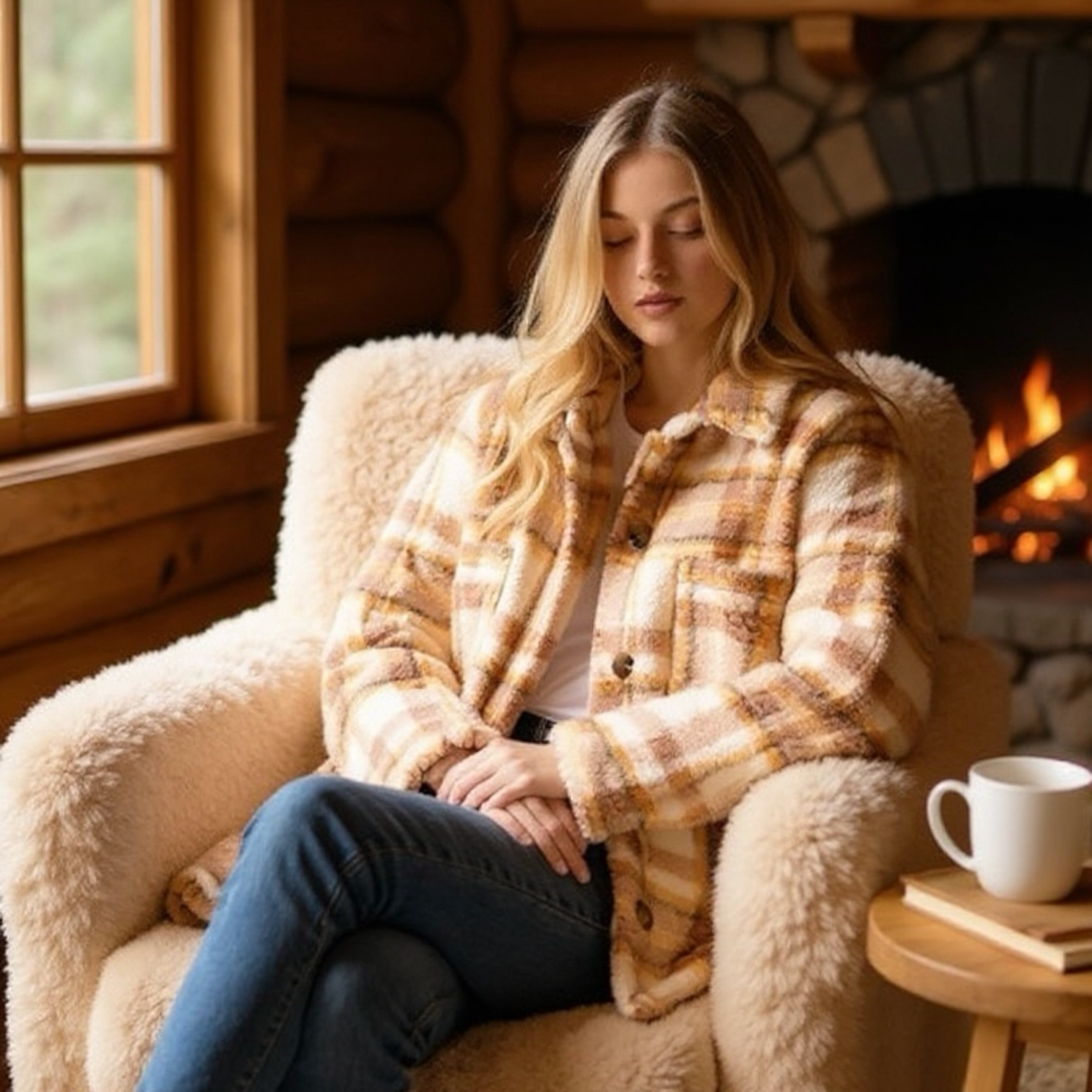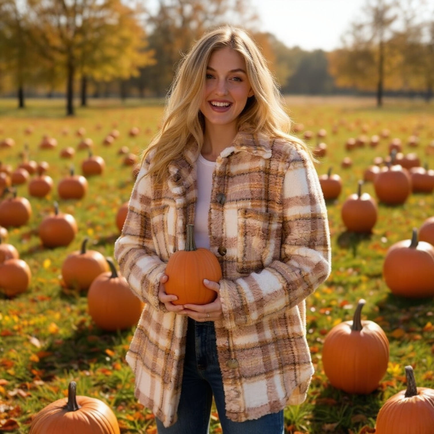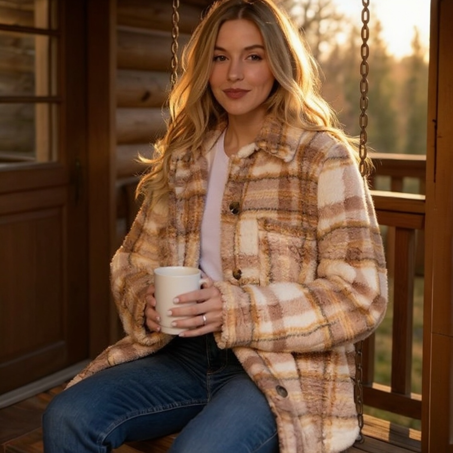 Wrap yourself in cozy autumn comfort with our Harvest Hues Jacket — a soft, oversized plaid sherpa that’s made for pumpkin patch strolls and fireside nights. The neutral tones blend effortlessly with your fall wardrobe, while the plush fabric keeps you feeling snug and stylish all season long.