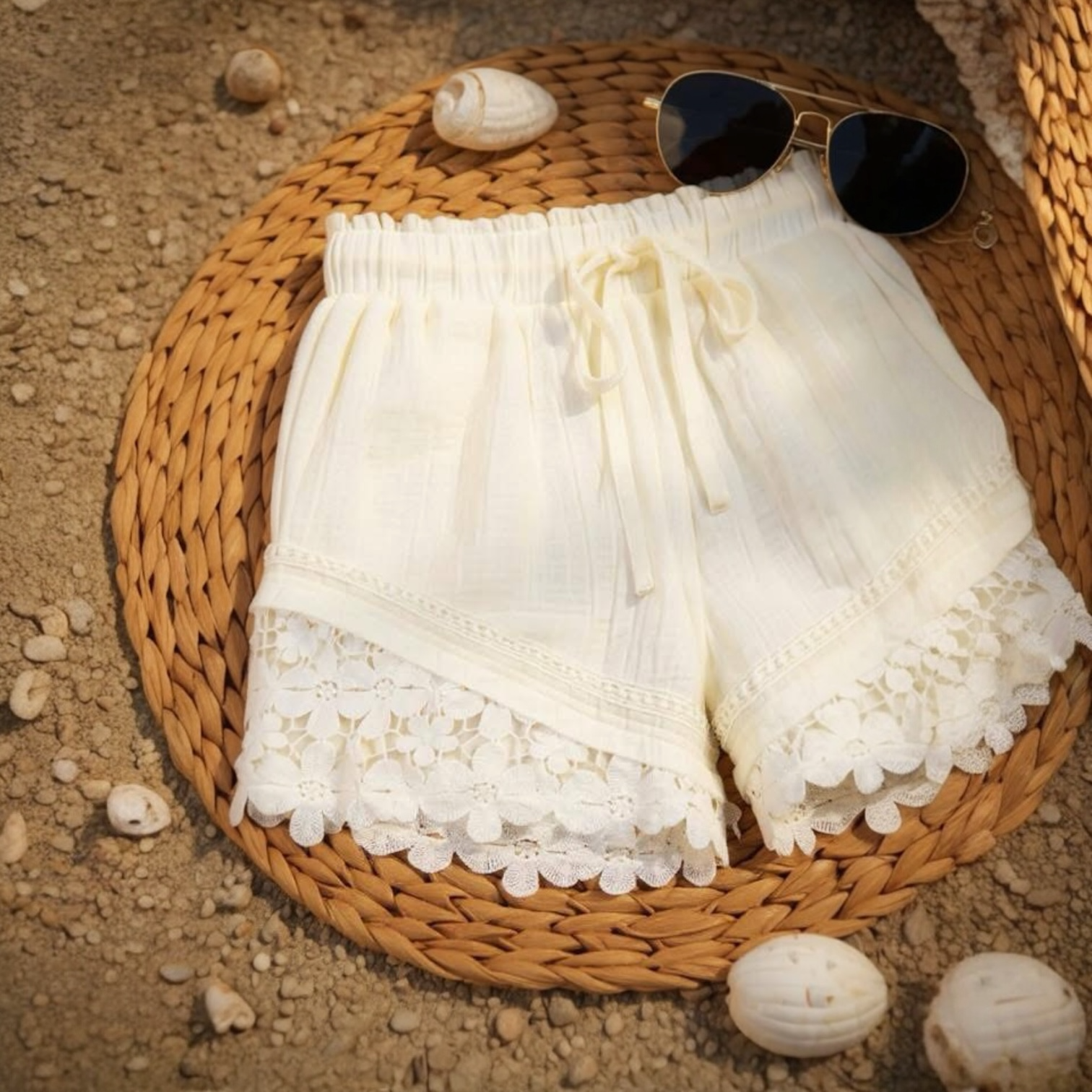 🤍 Laced Intentions Shorts – Lace Contrast Cotton Shorts with Pockets