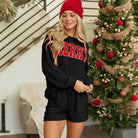 Black Sequin Merry Graphic Pullover & Shorts Lounge Set