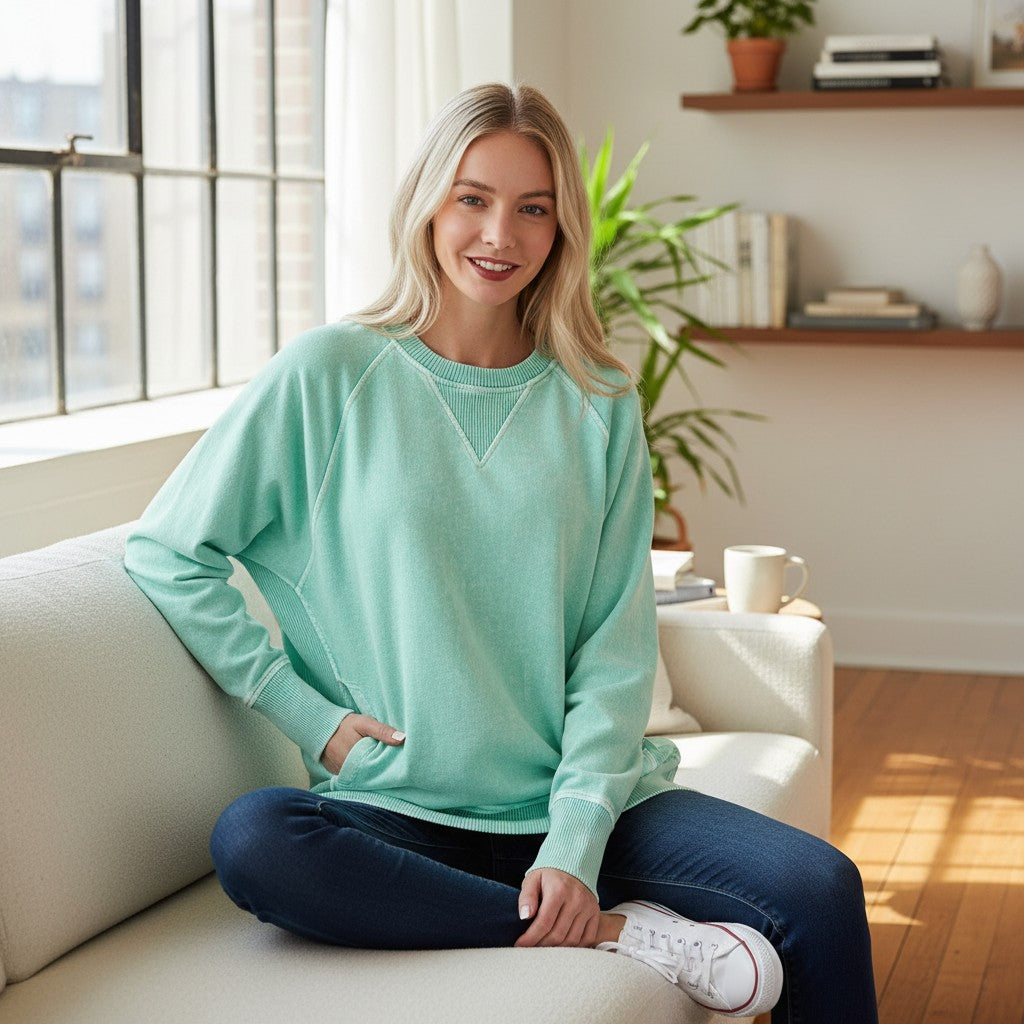 Meet your new go-to cozy essential! The Everyday Delight Pullover brings that effortless, lived-in charm with its unique mineral wash and soft halo-washed French terry feel. This one is comfy, stretchy, and loaded with details your customers LOVE! 🙌💕