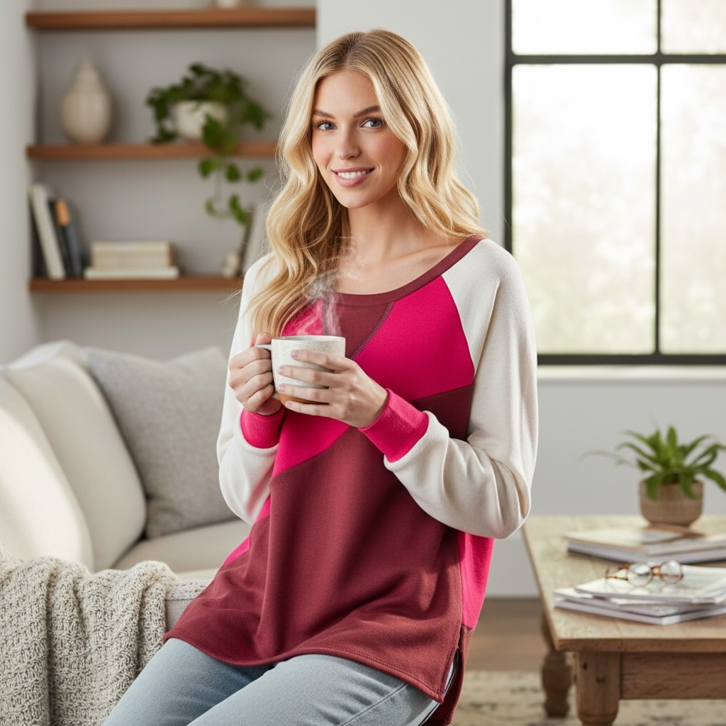 Enhance your style with our Cheerful Heart colorblock long sleeve top by Hopely! With its eye-catching contrasting colors, this versatile shirt brings a fresh and dynamic touch to your everyday look. Made from soft, breathable fabric, it guarantees all-day comfort. Its long sleeves make it perfect for transitioning weather, whether worn solo or layered. Complete your effortless style by pairing it with your favorite jeans or joggers. Experience the perfect combination of style and comfort with this trendy piece!