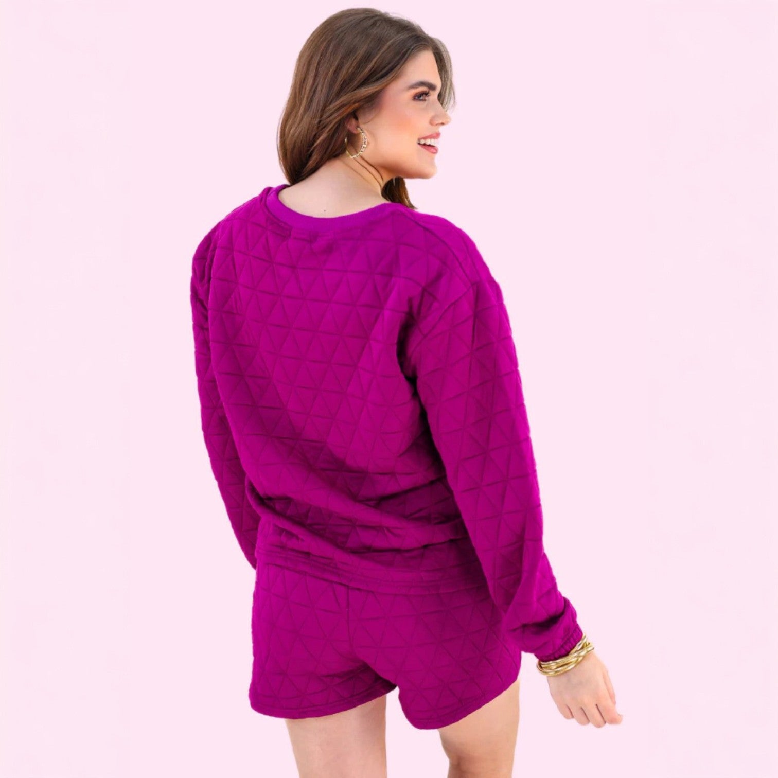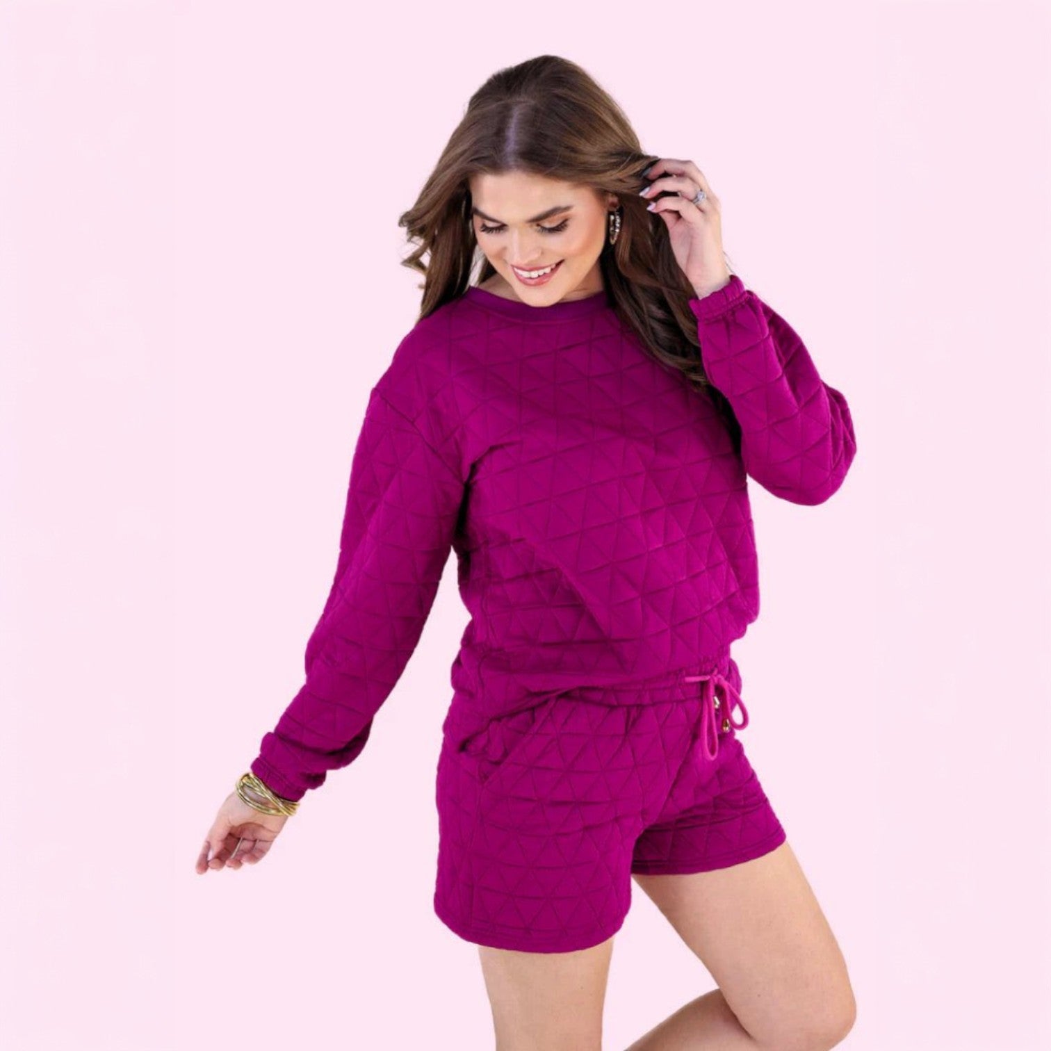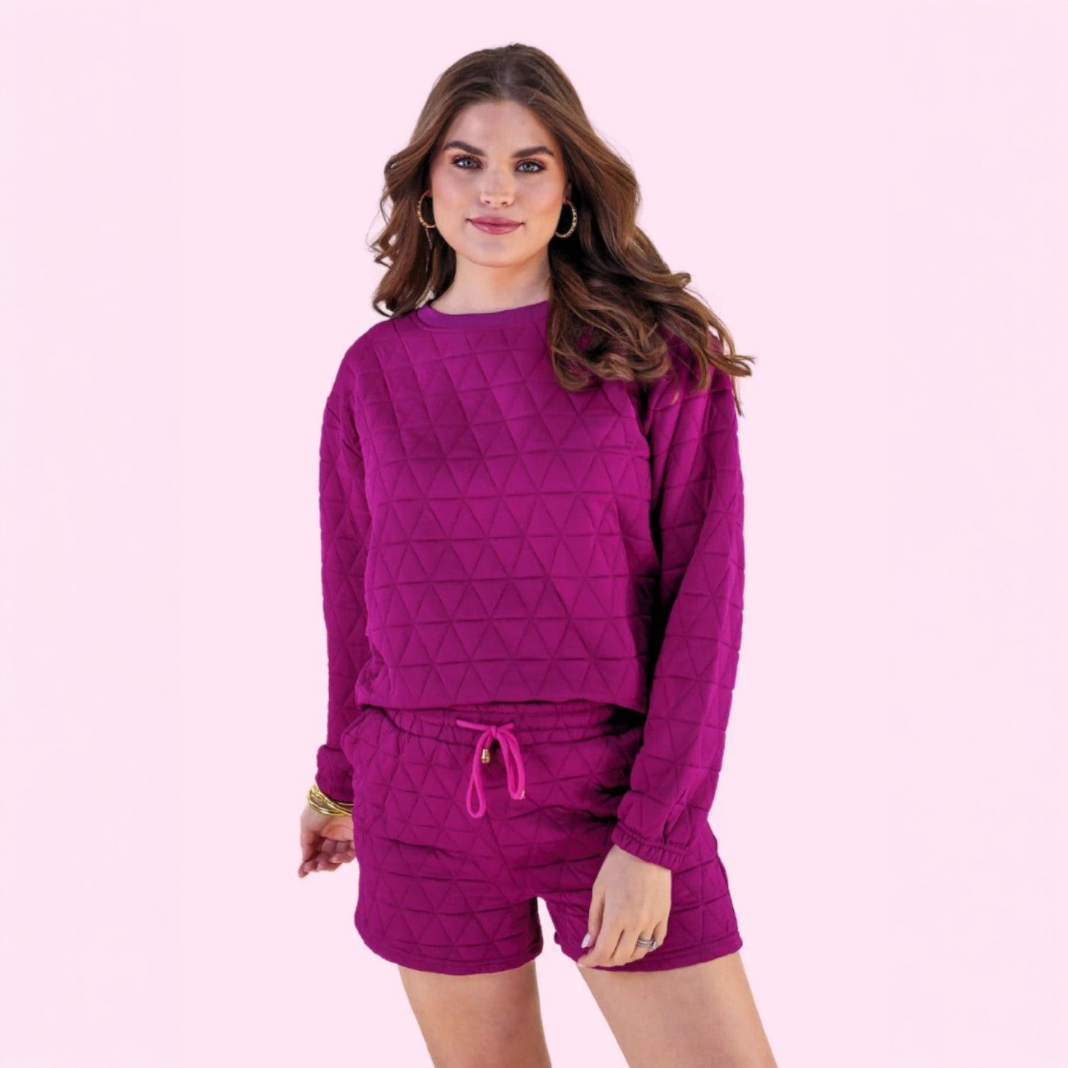 Cozy meets confident in the Bold Balance Quilted Set 💗 Designed in a dreamy berry hue, this must-have set features a plush quilted sweatshirt paired with matching relaxed-fit shorts for effortless style and all-day comfort. Whether you’re lounging at home, heading out for coffee, or running errands, this set keeps you looking put-together without sacrificing comfort.