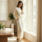 Wear the full set with cozy slides or sneakers for an effortless lounge look, or pair the top with denim and the bottoms with a solid tee for versatile, everyday outfits.