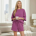 Meet your new go-to for effortless comfort 💫 The Casual Current Shorts Set features a raised rib short sleeve round-neck tee paired with matching shorts with a drawstring waist and patch pockets. Designed for relaxed days at home or casual outings, this easy two-piece delivers that laid-back, pulled-together look Zenana does so well.