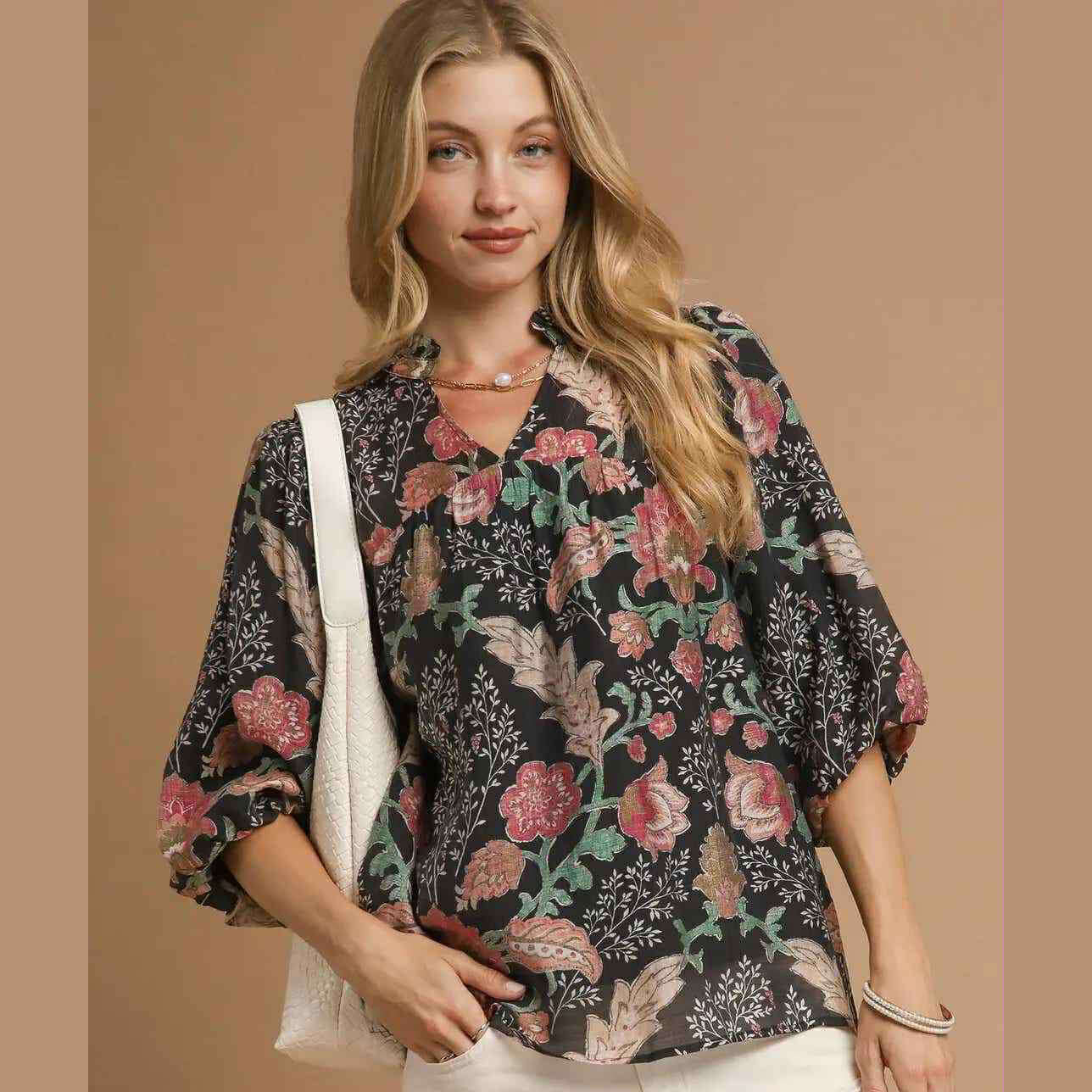 Fall in love with timeless charm and effortless grace in the Forevermore Top Blouse. Designed with a flowy, relaxed silhouette and a delicate floral print, this blouse brings a touch of romance to your everyday style. Perfect for the office, brunch, or a night out, it’s a versatile piece you’ll reach for again and again.