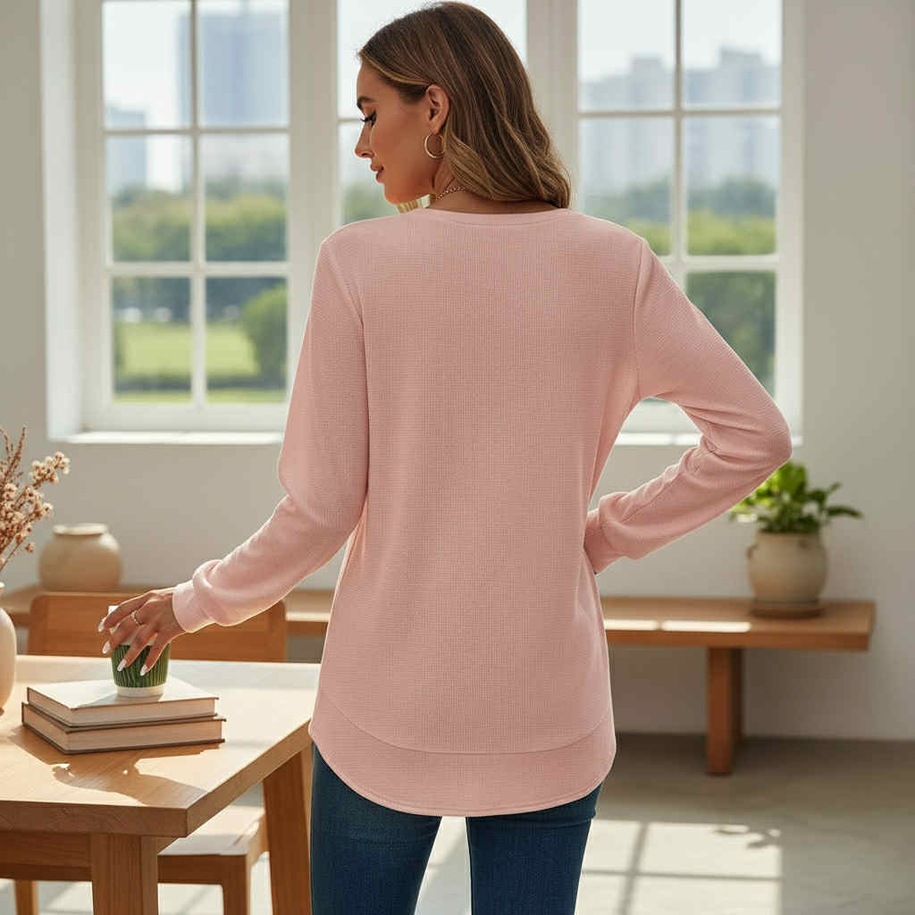 🌸 Blush Hour – Gossamer Pink Rounded Hem Waffle Long Sleeve Top